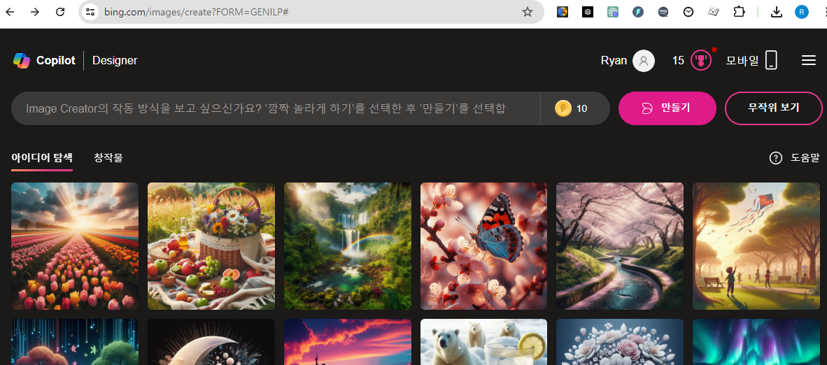 MS Copilot에서 Dalle-3로 구동되는 이미지 생성모델이 있어서 무료로 사용이 가능합니다.