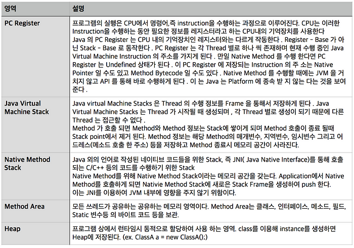 JVM이 프로그램을 수행하기 위해 OS로 부터 별도로 할당 받은 메모리 공간