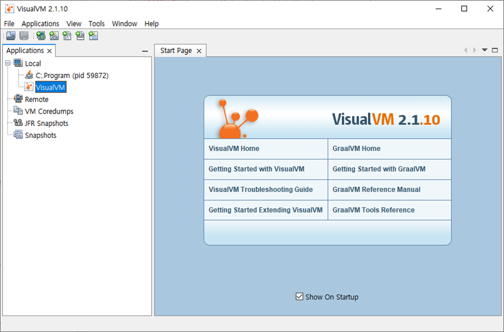 - visualvm 압축 푼 폴더로 이동 후 아래 명령어 실행