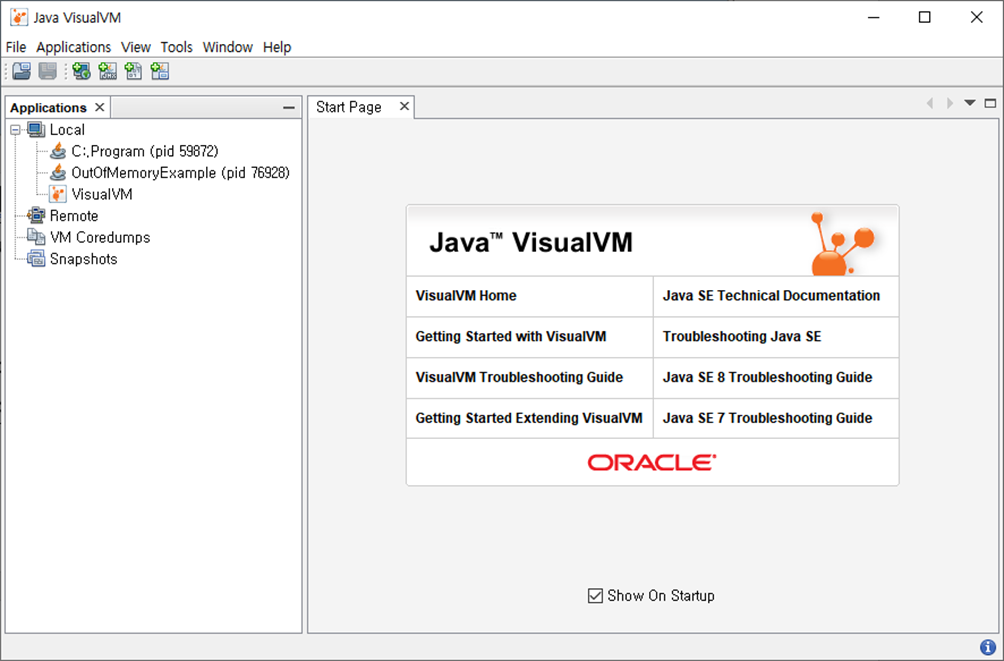 - 명령어 : visualvm.exe --jdkhome “jdk 설치 경로”