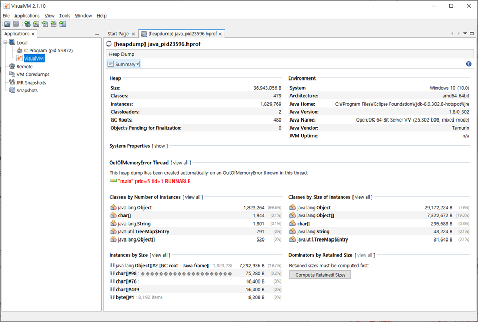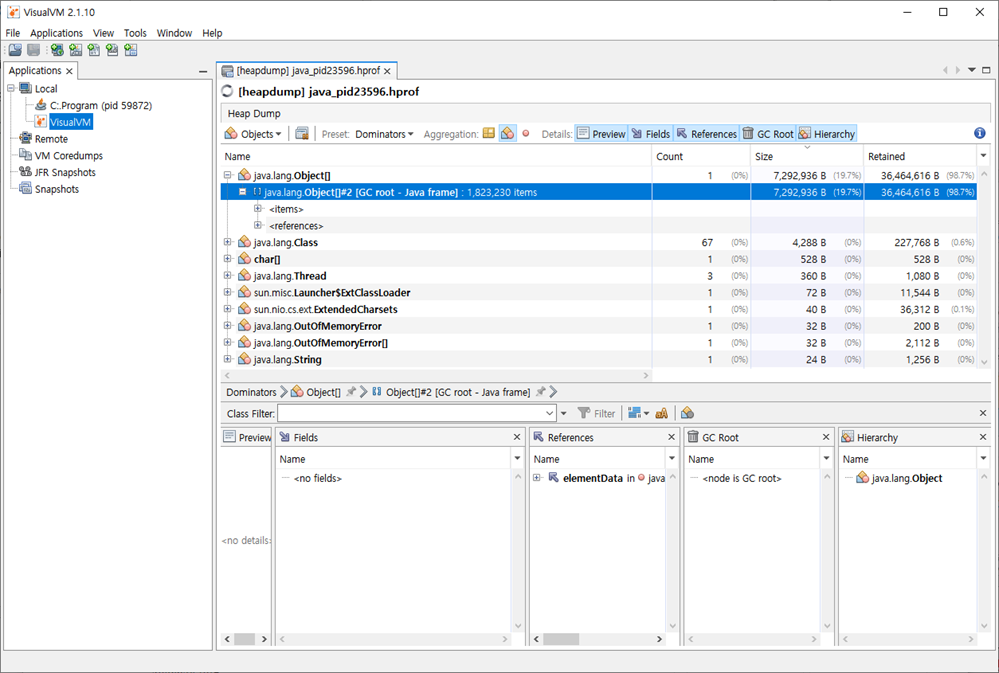 - Java_id23596.hprof 파일 로드