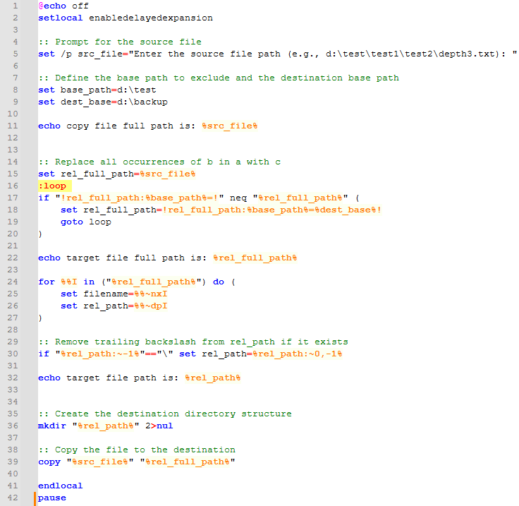 src_file 파일을 d:\backup\test1\test2\depth3.txt 에 백업을 하고자 할때 사용하는 스크립트 입니다.